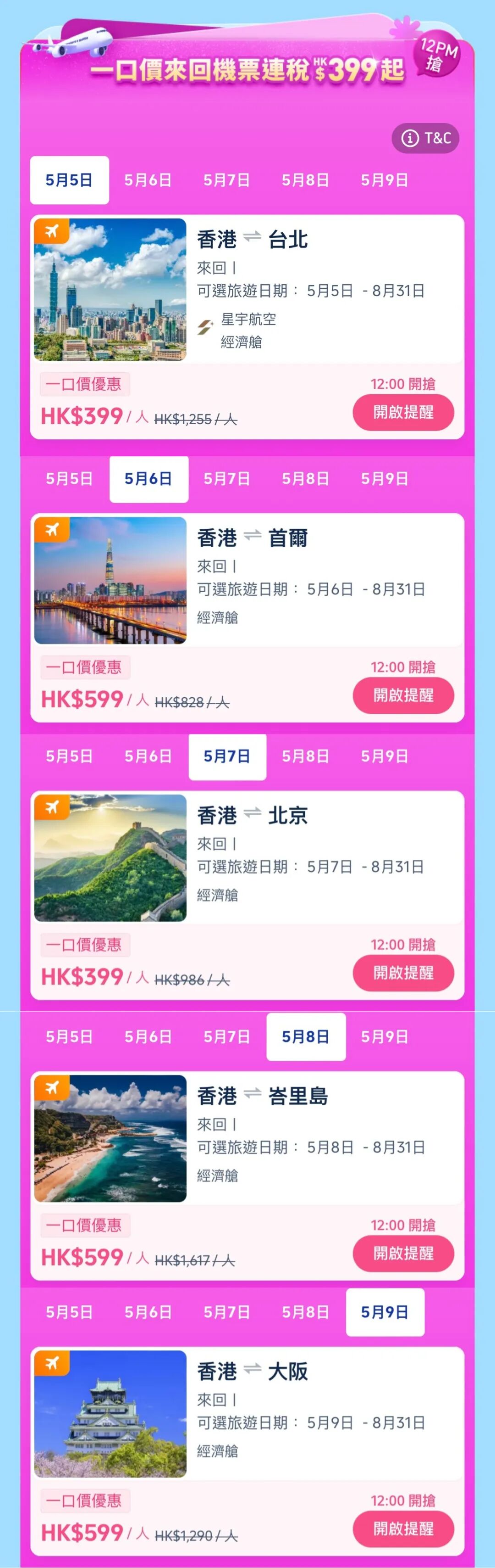 这几条航线,光税费都不止,算是倒贴钱搞活动了。大湾区的小伙伴,即便是加上往返香港的成本也非常便宜,必冲!