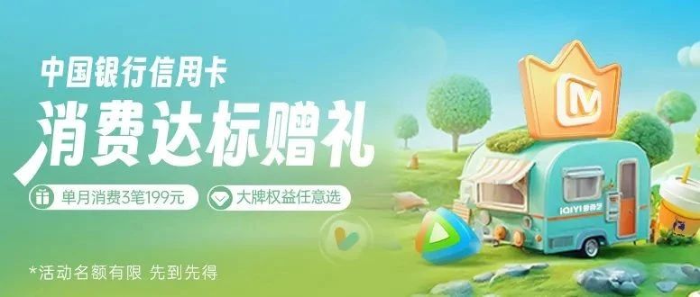 4、持卡人可在消费达标次月的15日起可领取礼品,每月领取名额上限5万次(单一礼品无领取上限),按领取时间先到先得。在活动名额充足的情况下,持卡人的领取及兑换资格最晚将保留至2026年1月31日,兑换时间结束后未兑换的资格将自动失效。若存在同一持卡人持多款可参加活动卡片的情况,各卡消费不重复计算,不同卡片的消费不可累积统计次数,以消费最高的单卡达标情况为准。如统计期间出现撤销、冲正或退货交易,则冲抵消费达标笔数。