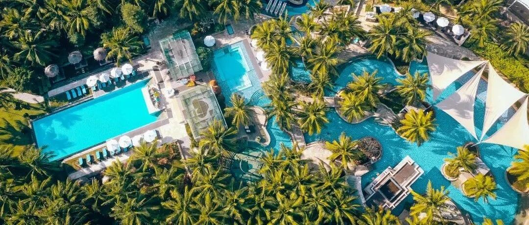 这家位置超级好,在海棠湾中心地段,和蜈支洲岛隔海相望,整体环境像在热带雨林,有水上乐园和各种活动项目。泳池很多,离沙滩也很近...