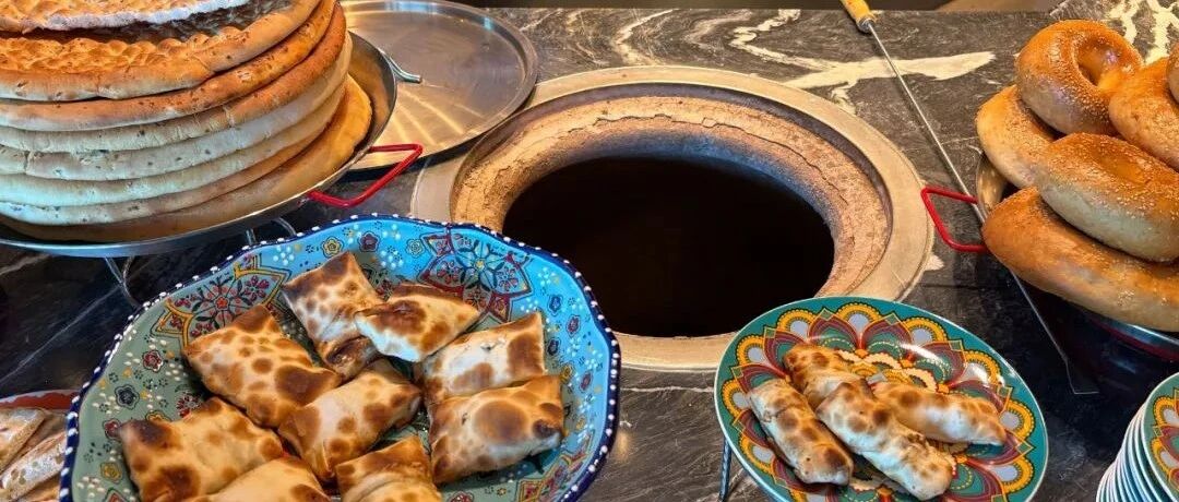 早上可以吃到很多新疆特色美食,比如现做的烤包子、烤馕、大盘鸡、缸子肉、手抓饭......