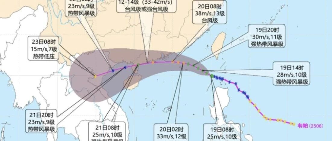 据中国天气 ,台风"韦帕"今天(20日)将登陆我国华南,而且在登陆前强度还会继续增强,可达台风级甚至强台风级。未来几天,台风"韦帕"将给华南带来强风雨天气,华南南部局地大暴雨或特大暴雨。