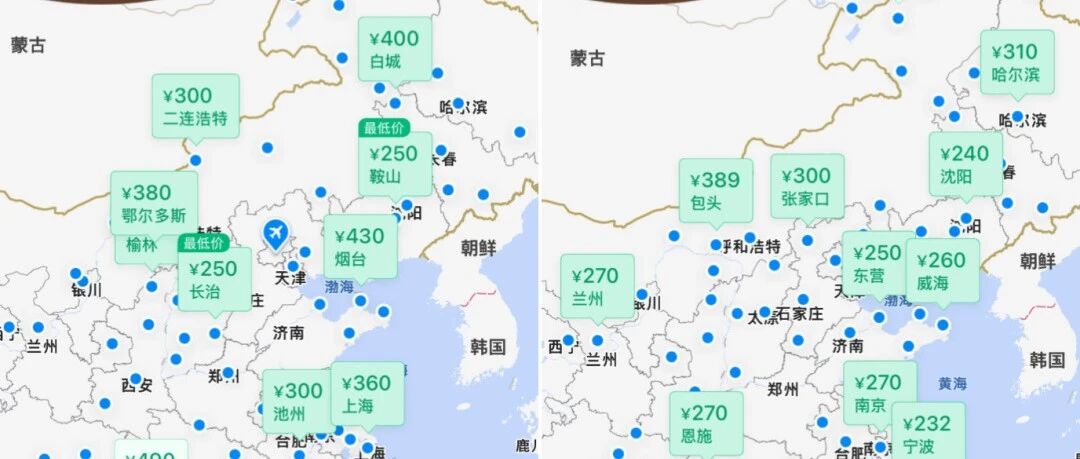 国航、吉祥航空、东航也都降了,往返含税1K1