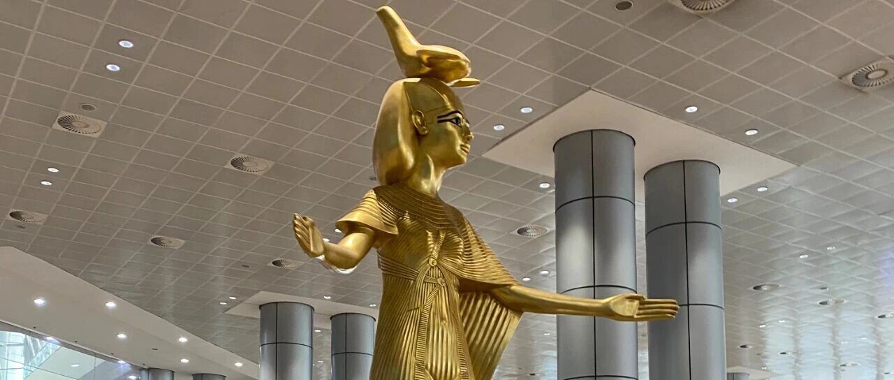 。办好过境手续,你会拿到以下两张过境小哥辛苦为你填写的单子,一张是给酒店的,长这样👇因为工作人员有限,且只有我们两个从华盛顿过来,所以我们等了大概有接近3个小时才办理下来。过海关时,也没有工作人员给指引,自己找all passports通道,长这样👇出了海关,第一时间记得去换外汇,不建议出机场换,第一不好找,第二落后国家不一定安全。出了海关,就能看见atm,但xhs有分享说不好用爱吞卡,且必须100美金起步,所以我选择了去机场柜台换,可用现金。机场换汇柜台很不起眼,且看起来只有一个,在托运行李大厅出来后,会看见一个埃及欢迎你的金像,那个柜台就躲在这座金像的身后右侧。金像是这样的👇在当地建议用埃镑,不要用美金也不要用人民币,因为用美金或埃镑,大概率你会被宰地没有最惨,只有更惨