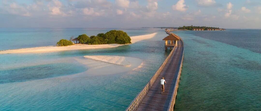 2019年6月开业的The Residence Maldives at Dhigurah瑞禧敦迪古拉岛,又简称为「禧敦迪D岛」,是隔壁禧敦迪F岛的姐妹岛,同属盛嘉隆酒店集团旗下,它也是LHW立鼎世旗下的。上岛方式是内飞+快艇,其中国内航班大概1小时,快艇大概5分钟。作为浮潜和沙滩都A级的六星豪华酒店,瑞禧敦D岛的优点很多——- 这里有马尔代夫最长的网红日落栈桥,长度达到1公里,一次可以体验三岛;