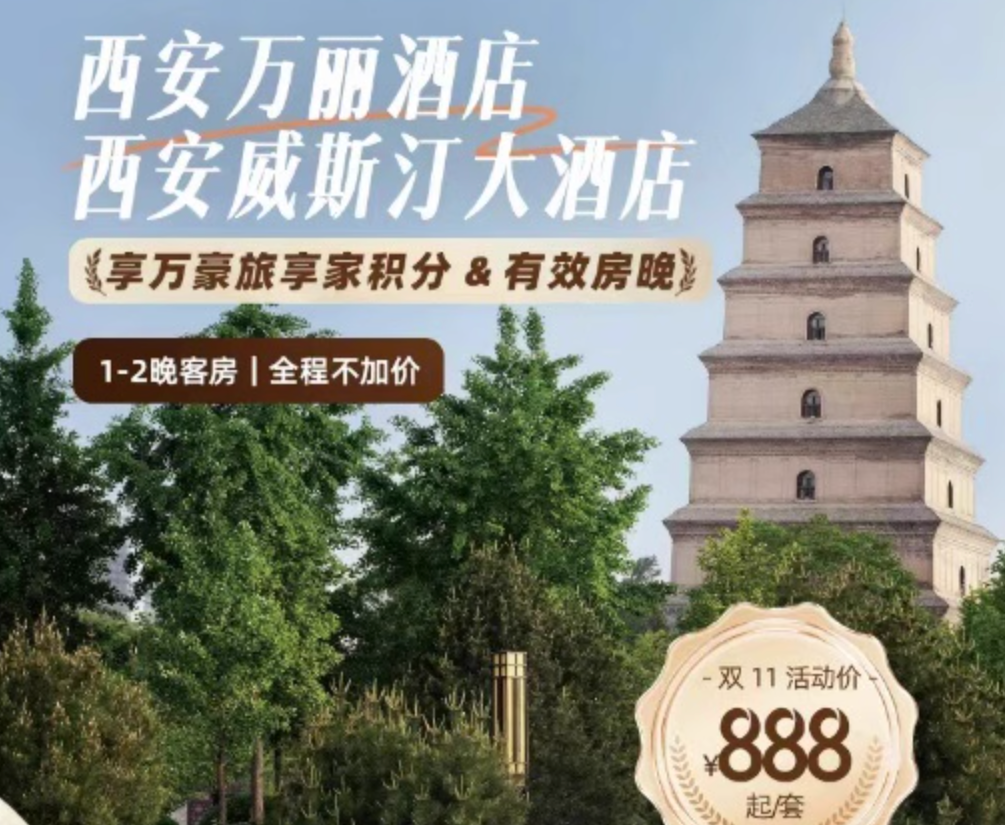 1188元/2晚:推荐厦门艾美、武汉卓尔万豪、洛阳万怡、合肥新站利港喜来登、西安赛瑞喜来登、上海绿地万怡等;