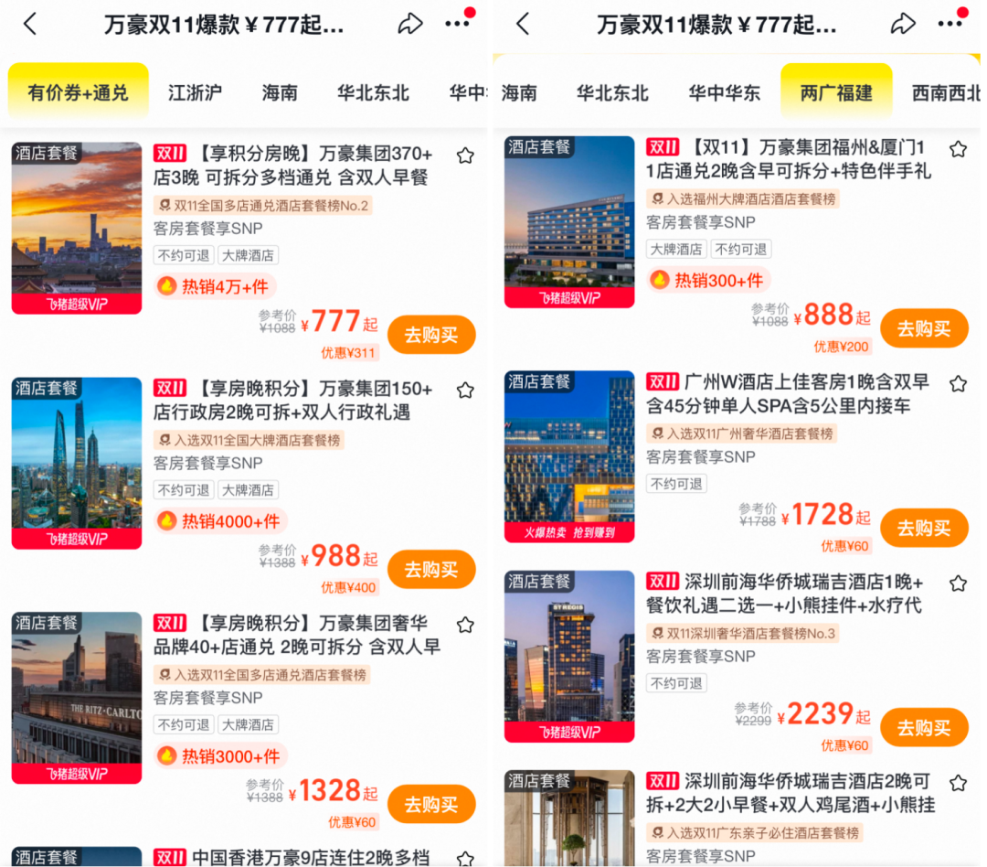 1388元/2晚:推荐珠海华发万豪、上海中优城市万豪、武汉汉口喜来登、嘉兴万豪、沈阳和平艾美、贵阳万丽等;