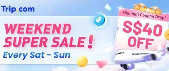 Trip.com 在各个地区的站点都有不同的促销活动,这个新加坡站的周末促销是长期活动,每周六、日开启,所有会员都可以领取50新币的机票优惠码,新会员还可领取40新币的机票优惠码。其他区域的用户也可以到新加坡站参与优惠。