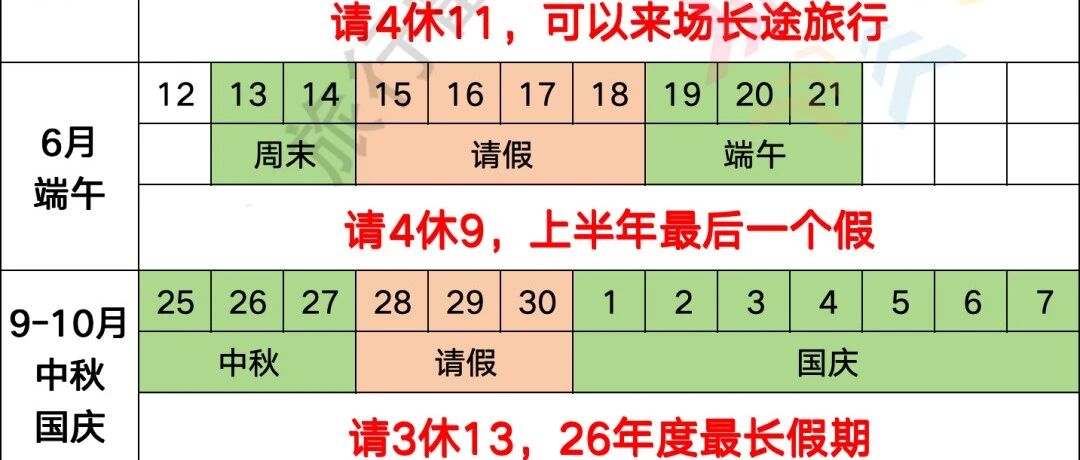 节假日出行锁定了多少,2026年拼假攻略,胆子大/年假多的可以拼出6个小长假!保守的总共请5天年假,也可以休2个11天以上的假期!