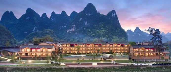 酒店位于拥有1700多年历史的兴坪古镇。坐落于重重如画的漓江之畔,整体建筑墨山镜水,宛若桃园。内设125间陈设雅致的山景、河景、园景客房及套房;酒店位置便利,交通区位优势明显,可轻松抵达阳朔高铁站及20元人民币风景区。
