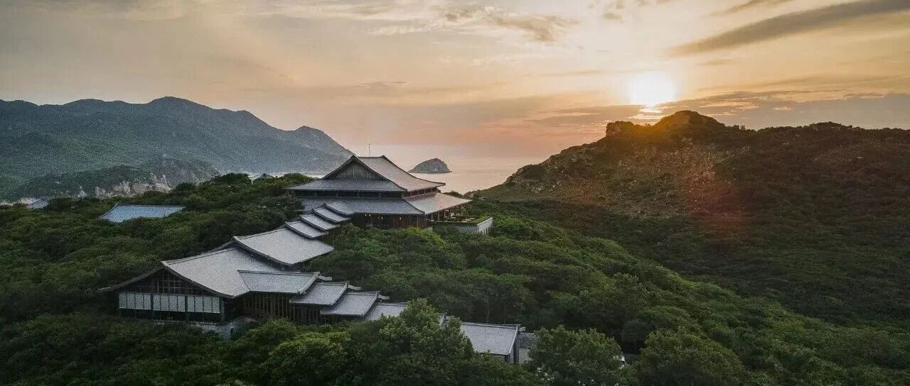 设计大师Jean-Michel Gathy将酒店大堂与全日制餐厅置入整座度假村最大建筑——其外形采用中国古建筑传统的重檐歇山顶,内部则仿照越南传统乡村公社大厅进行布局,又根据本土特色增宽飞檐减少隔断,依地势将入口设计成气势恢弘的台阶回廊,层层叠叠的屋顶如龙鳞般在夕阳下熠熠生辉。