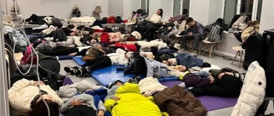 被困的游客们被安排到镇上唯一一所学校。学校开着暖气,有热水和厕所,小食堂免费提供水、咖啡、面包、火腿、芝士和意面。不少中国游客已经在教室和走廊里等待。