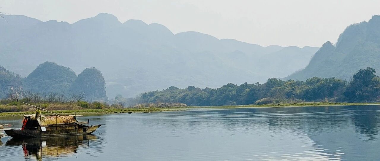 清晨站在窗边,看一艘小船慢慢划过水面,
