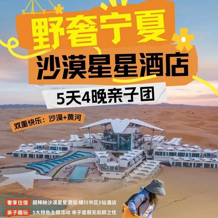 这次挖到的【野奢宁夏5日亲子营】,直接把亲子度假的仪式感拉满!1晚入住一房难求的"沙漠星星酒店",在腾格里沙漠深处推门见沙、躺看星河;3晚连住银川市区5钻凯悦酒店,舒适不折腾。更有西夏陵专属讲师、黄河沙漠N种玩法、非遗手作、实景马战……全程专业领队+1天摄影师跟拍,带娃轻松奔赴这场山河与人文交织的野奢之旅。