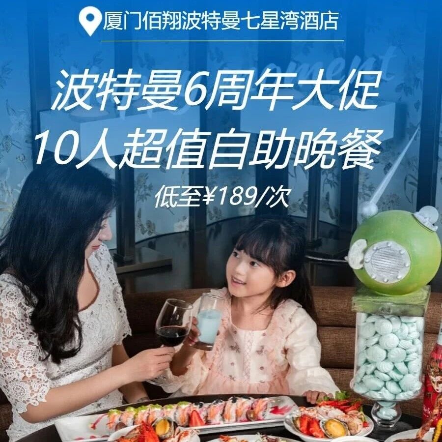 厦门波特曼七星湾酒店乐味全日制餐厅推出6周年大促自助晚餐券,10人总价1890元(人均189元),支持拆分使用,无需凑齐人数。餐厅位于法式城堡内,环境出片,提供海鲜、佛跳墙等畅吃。每位成人可带1名1.2米以下儿童免费。购买后需提前预约,未预约随时退,周末及节假日使用规则请下单前确认。