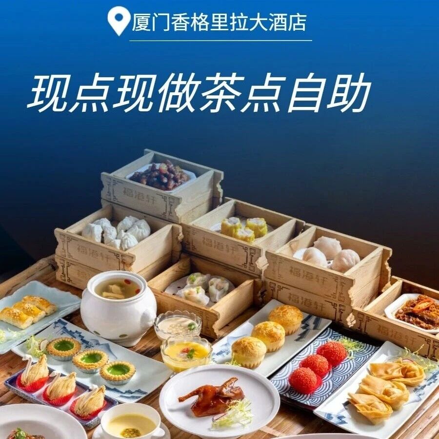 厦门香格里拉福港轩中餐厅推出茶点自助与烤鸭套餐。茶点自助1大1小258元,现点现做,每位成人赠半只乳鸽;烤鸭268元/只,古法果木烤制。平日周末通用,需提前预约,未预约可退。适合家庭聚餐、亲子早午餐。
