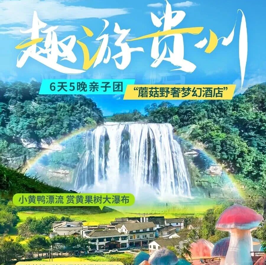 贵州的夏天,是23℃的清凉,是黄果树的轰鸣,是小黄鸭的萌趣,是蘑菇屋的童话,是地心深处的震撼……这条线,把贵州最精华的山水和亲子体验,用"不赶路、慢慢玩"的方式打包在一起。早鸟名额有限,点击小程序或私信我咨询锁位吧!这个暑假,带娃钻进贵州的山水,做一场关于夏天的梦。