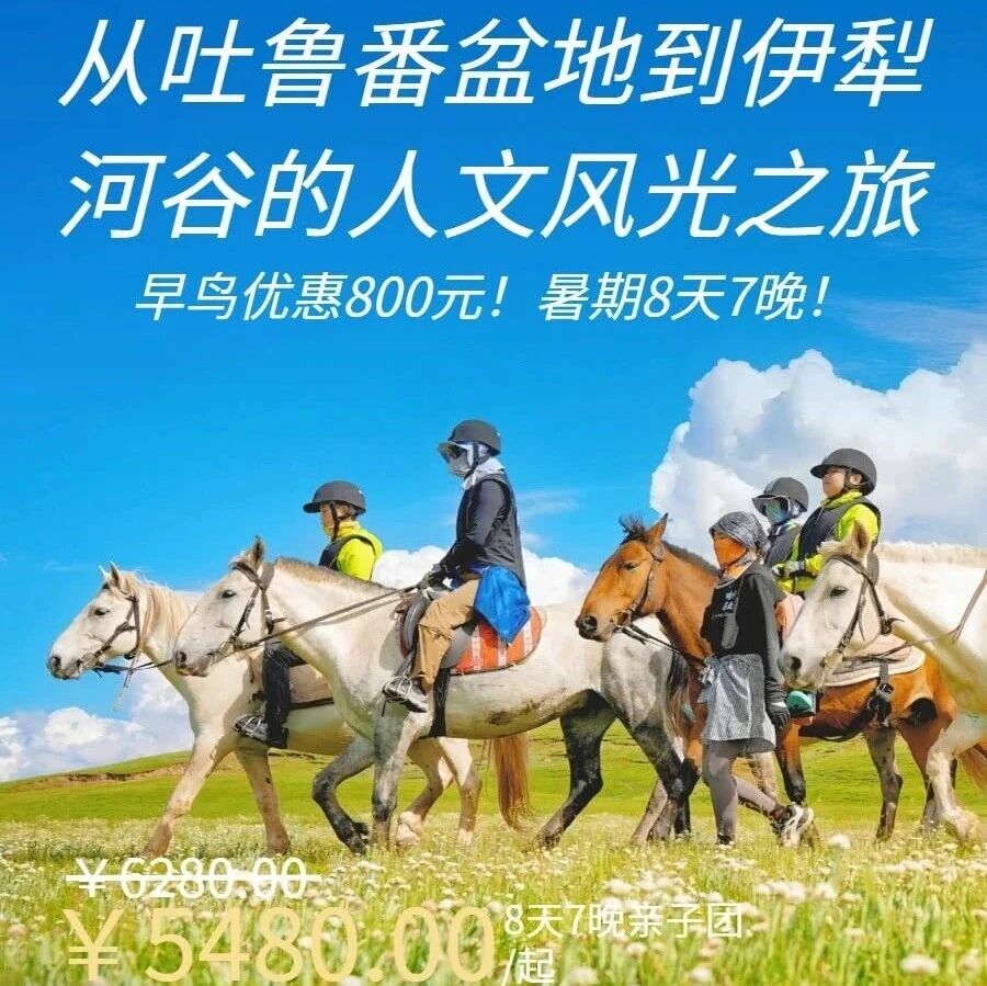 这条新疆8日亲子营线路,从吐鲁番到伊犁,通过动车减少600公里车程,日均车程仅3小时。早鸟优惠减800元,成人¥6680起,儿童¥5480起(不占床)。适合4-14岁亲子家庭,含赛里木湖骑行、草原骑马、哈萨克家访等研学体验,全程四钻酒店,10人以上配摄影师跟拍。退改政策严格,下单前请确认出行计划。