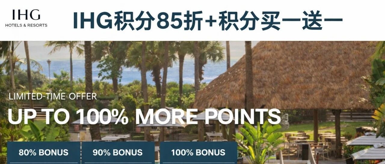 最近 IHG 又放大招了:积分房 85 折 + 积分买一送一(100% Bonus) 同时在线,刚好叠在一起,性价比直接拉满。