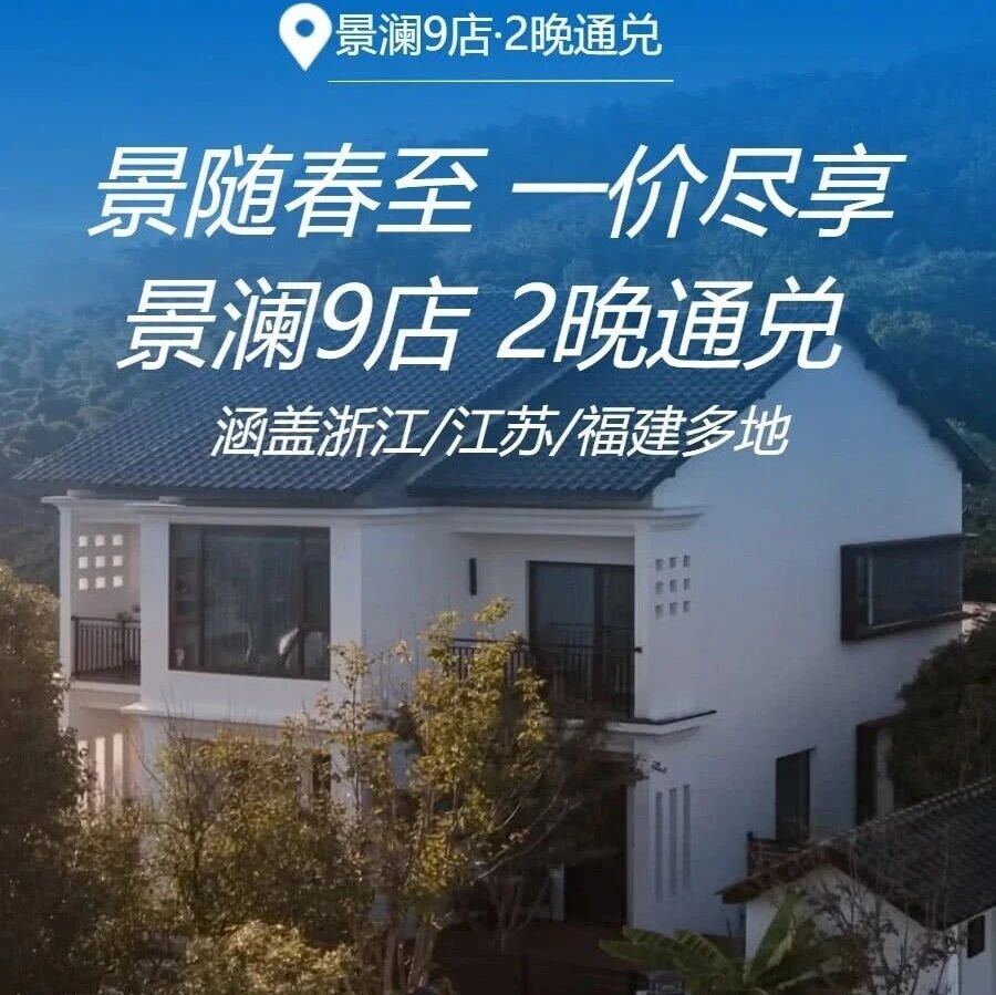 景澜度假推出798元2晚通兑券,覆盖浙江、江苏、福建9家门店(杭州桐庐莫干山等),2晚可拆分使用。部分门店在清明、端午小长假及周末不加价,含双人早餐及部分门店赠送欢迎水果、非遗体验等。适合亲子遛娃、情侣约会或带父母出游。未预约可随时退,预约后不可退。